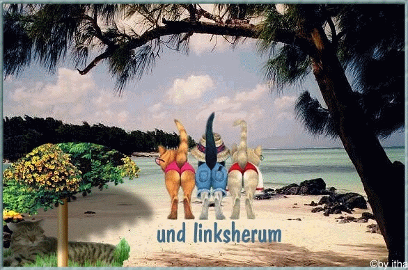 So mach ich Urlaub. Während die ihre Gymnastik machen, lieg ich auf dem einzigen kleinen Fleckchen kühlem Gras am Strand im Schatten und döse...